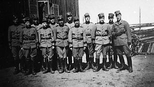 Soldater framför barack. I. eller II. kårdivisionen, A 6.