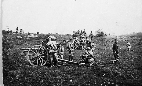 Kanon m/1902. 7,5 cm. Batteri i eldställning, på Vikbolandet.