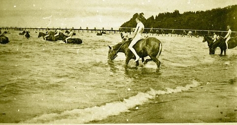 Hästar, badning. Vättern, nedanför Backgården. A 6.