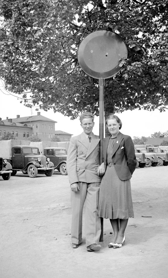 Två civila på kaserngården.