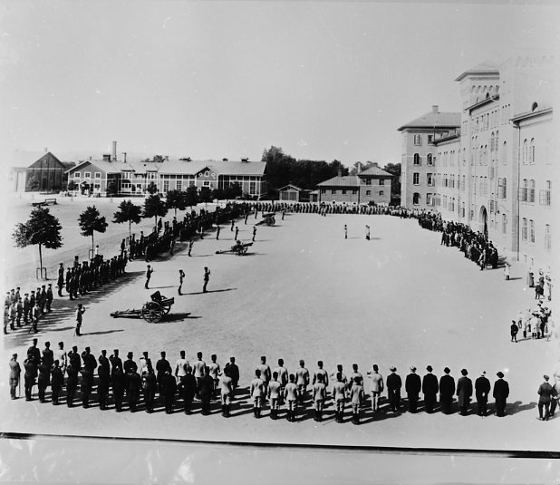 Jubileum 25-års, A 6. Regementet uppställt på kaserngården.