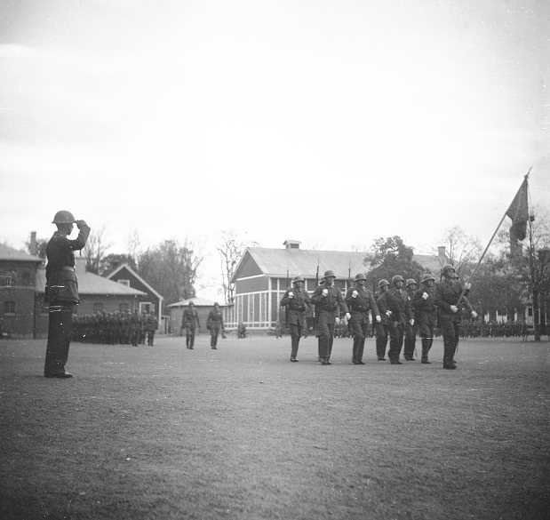 Inspektion. Standarvakten förbimarsch för den inspekterande.