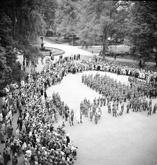 Högtidlighet i Rådhusparken i Jönköping. Kompani ur A 6 samt frivilligorganisationer.