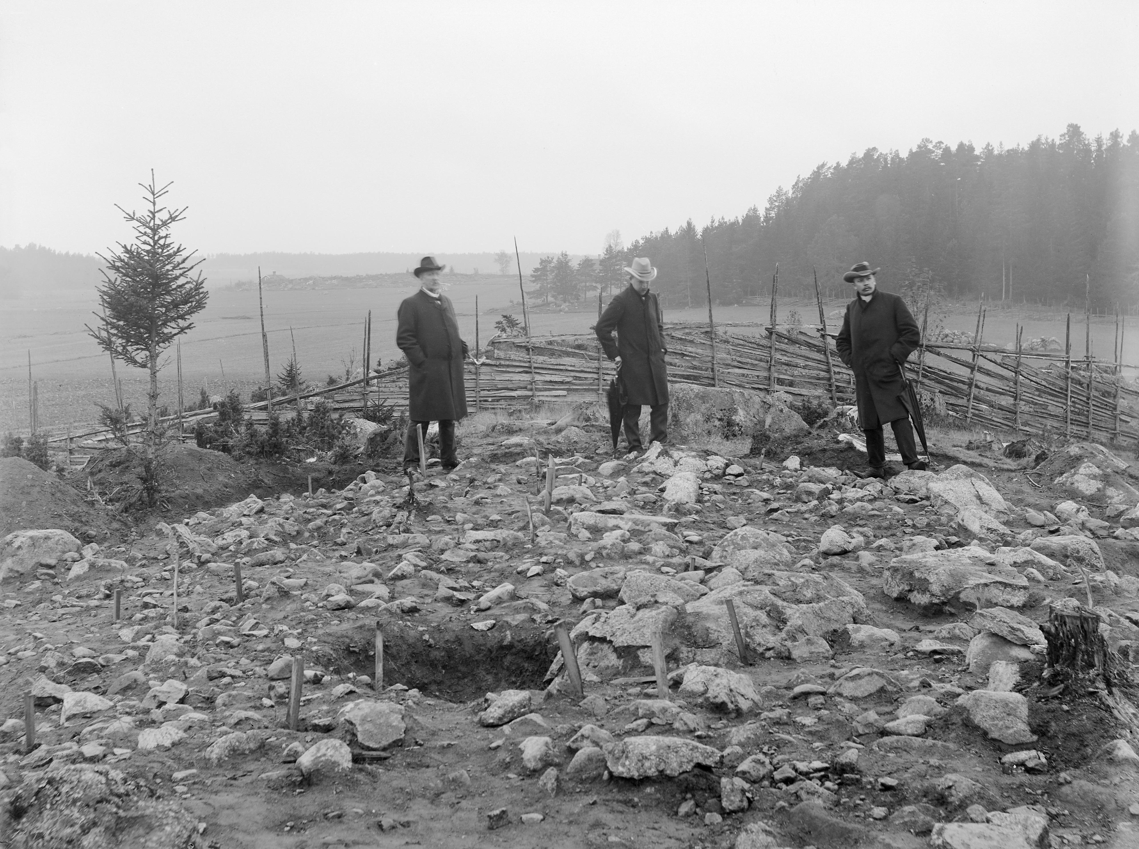 RAÄ-nummer Bred 103:1 Boplatsvall vid Boda. Vid fornlämningen: Oscar Montelius, Sune Ambrosiani och Knut Stjerna.