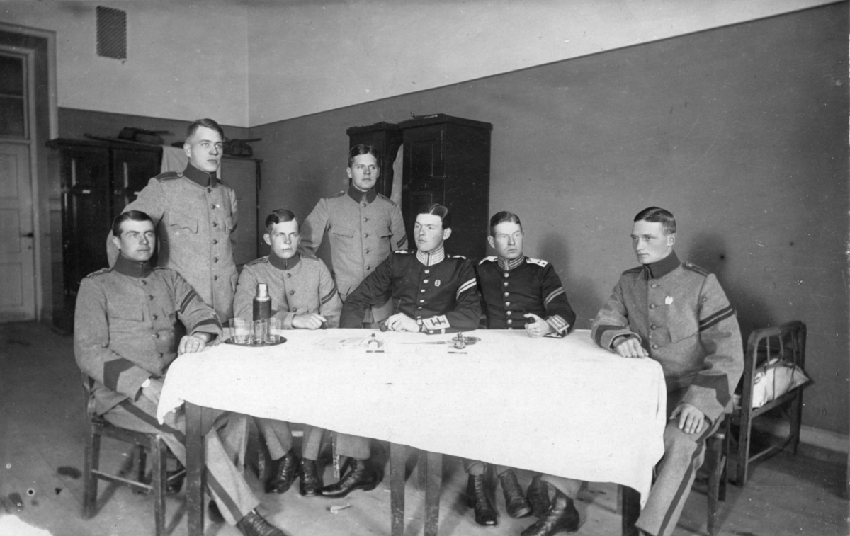 Hälsning. Gunnar Gadolin, 8. kompaniet, I 12, Jönköping. Hälsningar från Boden.