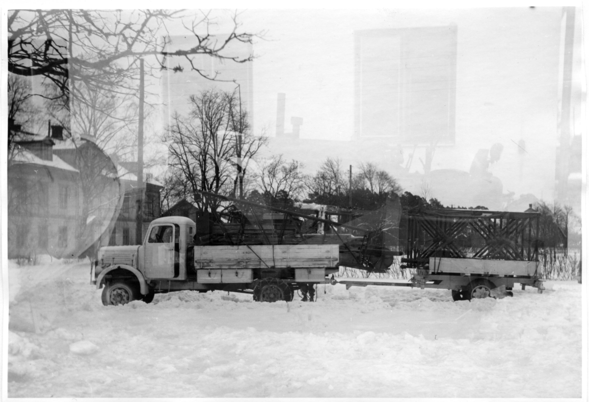 Titel: Maskinell utrustning. Terränglastbil Klockner m/42 med 1 sats balkbro 1 materiel.