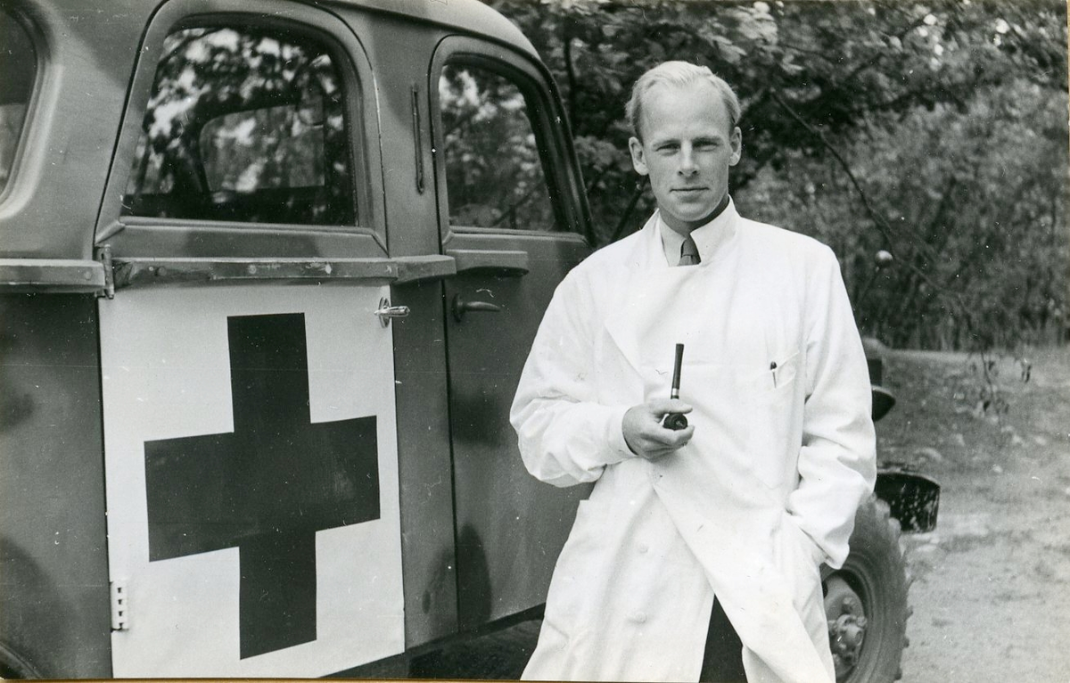 Vid Ing 1:s sjukavdelning tjänstgjorde i tät följd en hel del av huvudstadens läkare, här företrädda av dr Carl Forsell, som samtidigt blev fransk mästare på värja.