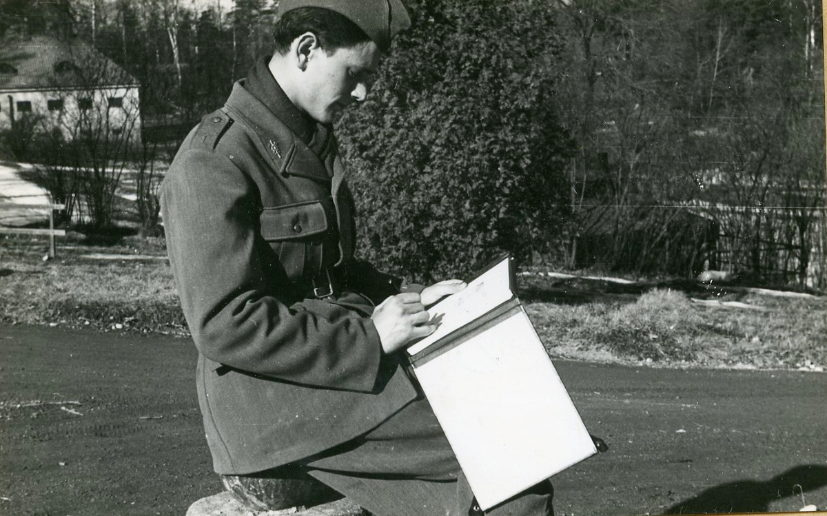 Konstnären vpl Lindroth avdelades att med sitt ritstift föreviga byggnader och vyer inom kårens område - många försvann strax därefter.