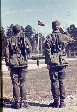 Titel: Soldats uppträdande. Hälsning på flaggan.