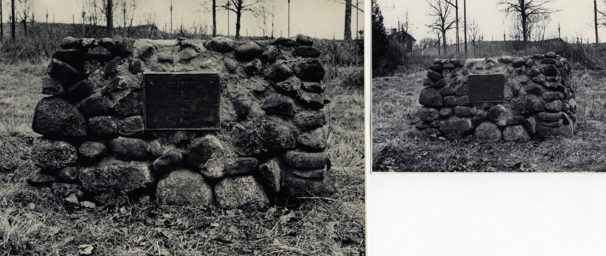 Gossens grav (2 foto). Lilla bilden med torp i bakgrunden, A6.