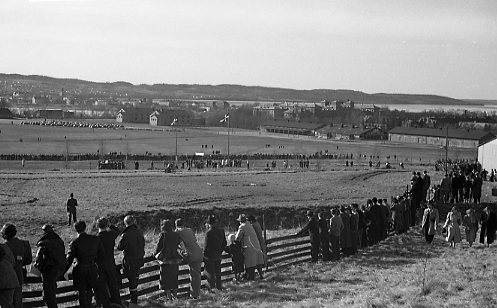 Motorcrosstävling på A 6 övningsfält. I bakgrunden A6 Kasern.