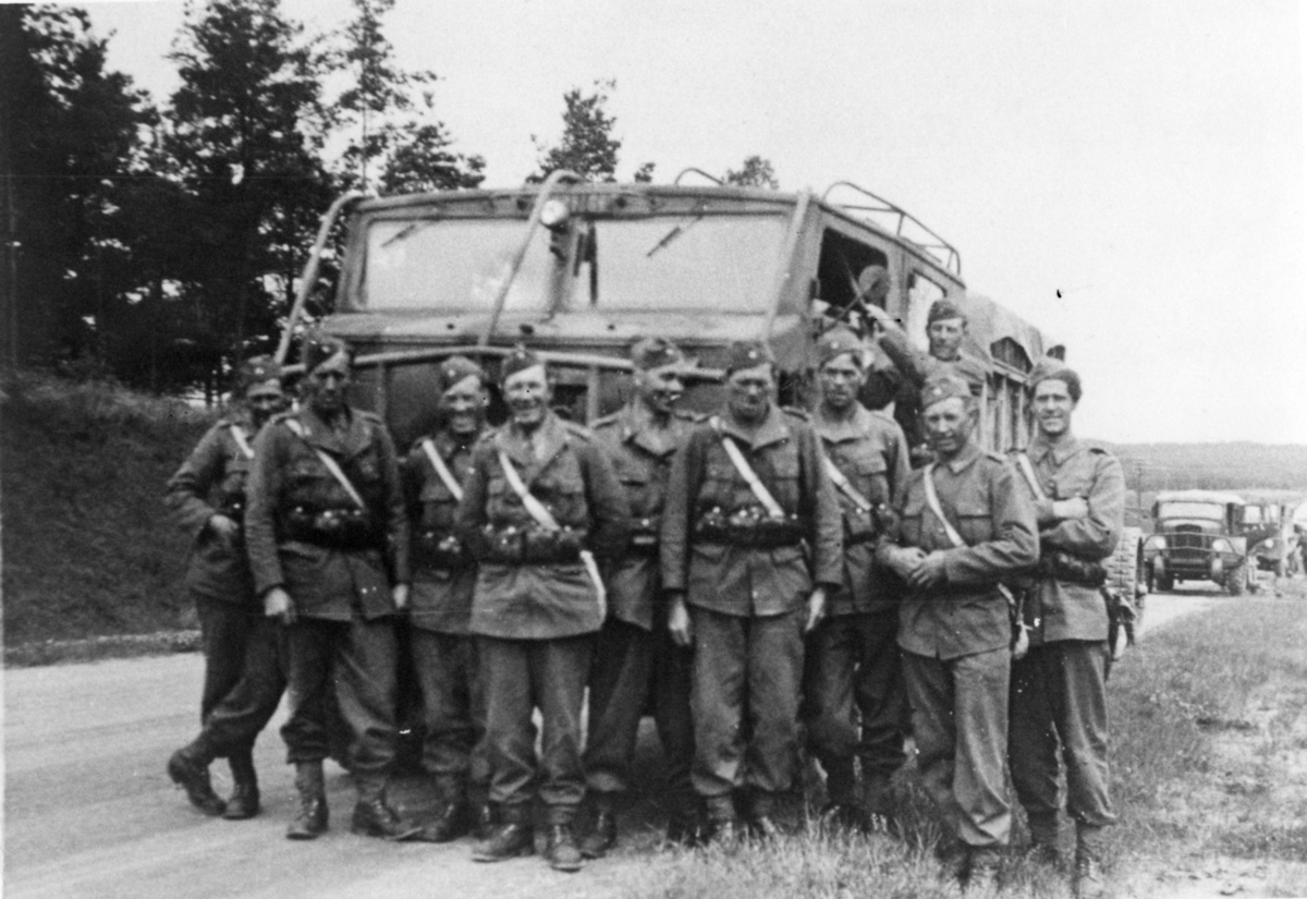 Titel: Rast på Hallandsåsen, 15.Kårbatt. 1 avd. A 6. Terrängdragbil m/1942 TVC.