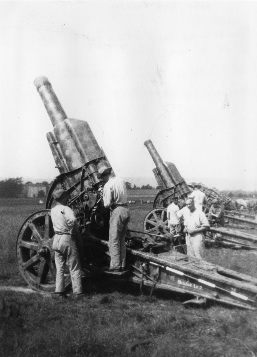 Haubits m/1917. 21 cm. Pjäsexercis på A 6 övningsfält.