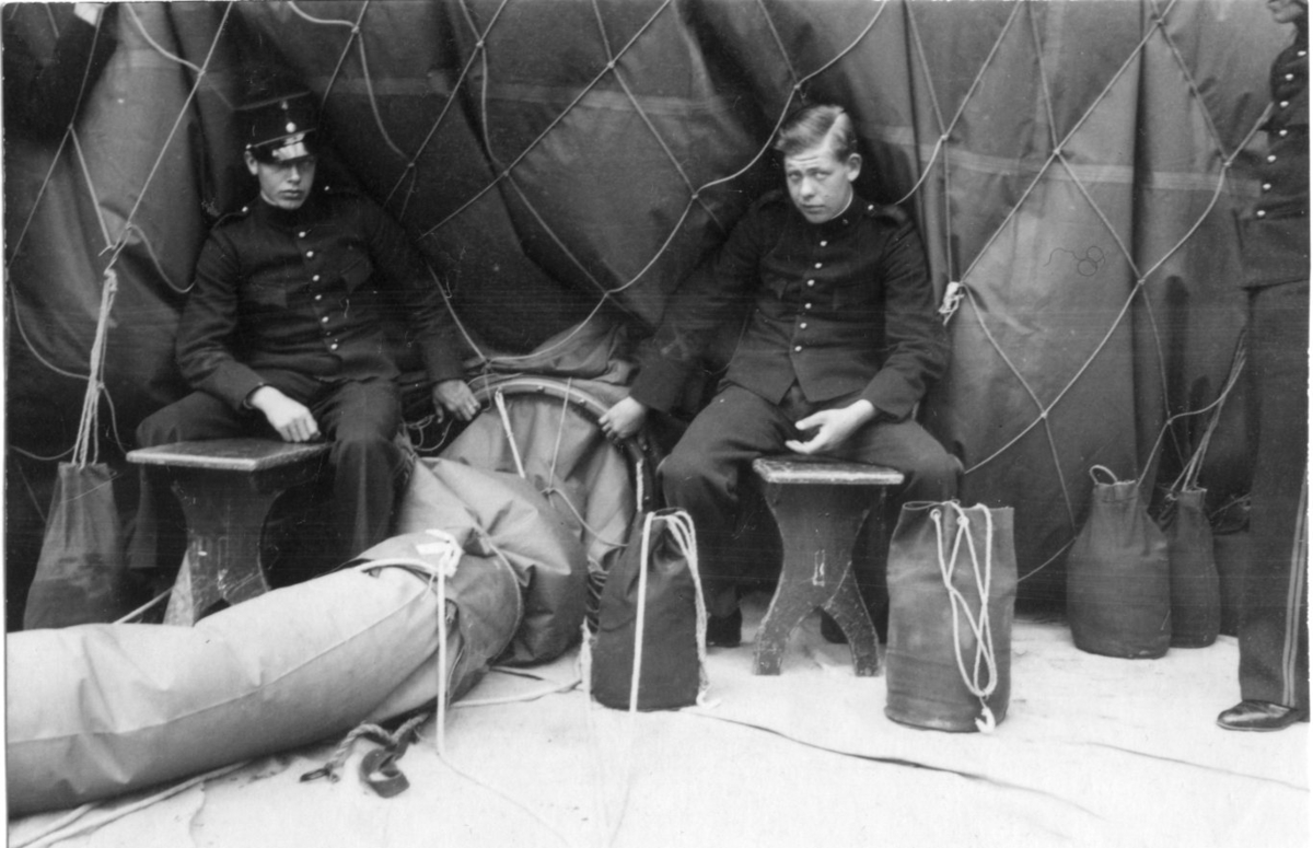 Ballongen fylles med gas. Till höger: volontär Egir, A 6.