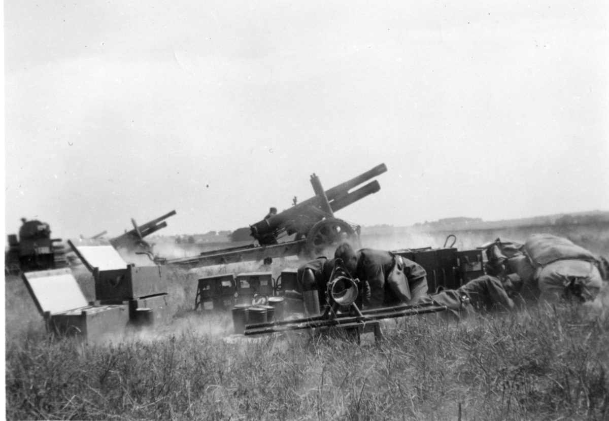 Titel: Haubits m/1939. 15 cm. V Kårdiv. A 6. Skjutning mot sjömål.