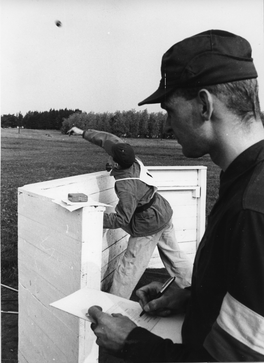 Femkamp. Handgranatkastning. Milomästerskap, P 6.