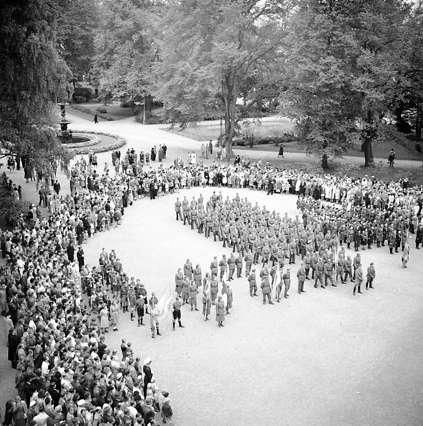 Titel: Högtidlighet i Rådhusparken i Jönköping. Kompani ur A 6 samt frivilligorganisationer.