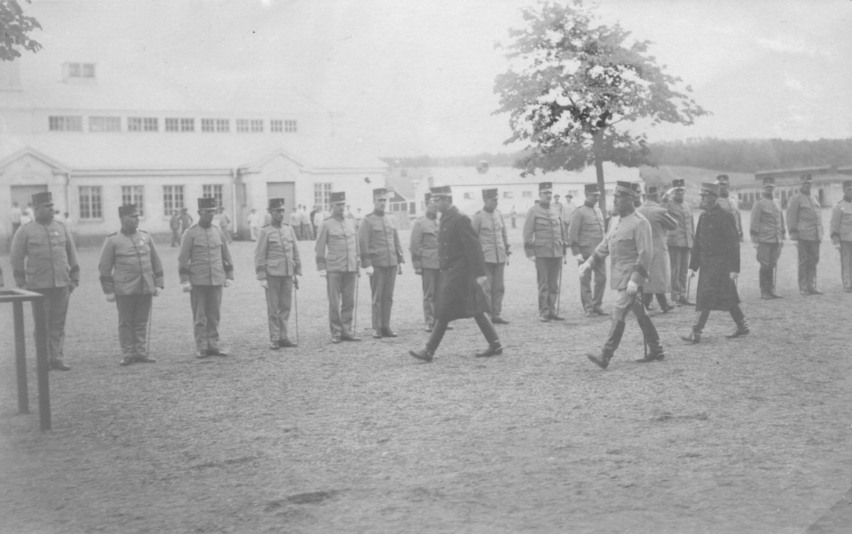 Under Riksskyttetävlingen i Jönköping 1921. Kronprinsen emottager I 12:s underofficerare å kaserngården den 21. juni.