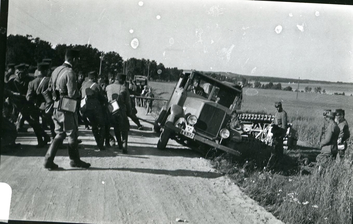 Bärgning av lastbil, A 6. Skolbatteriets marsch till Karlsborg.