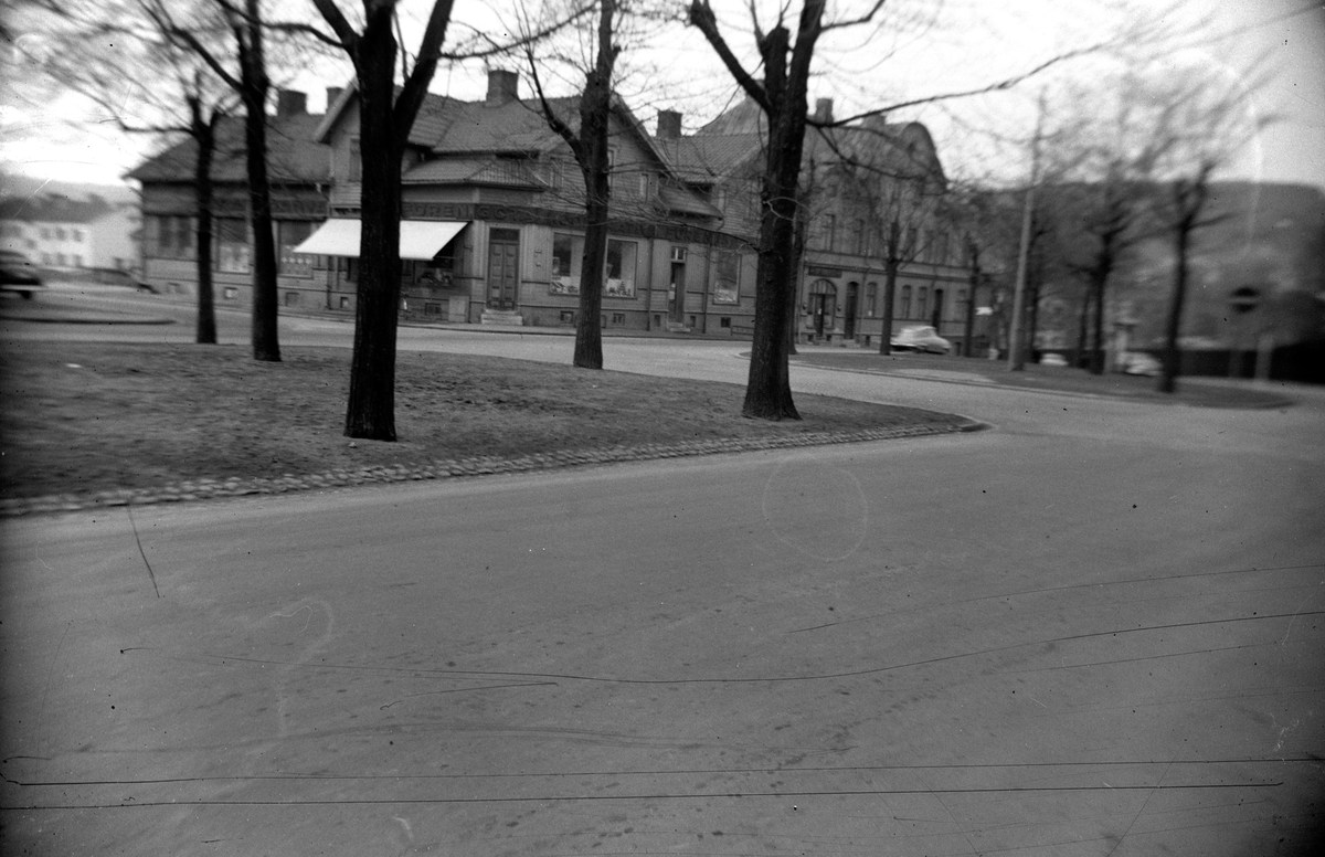 Närmast i bild syns trädplanteringen utmed Kungsgatan i Jönköping. I bakgrunden ligger Konsum Göta i hörnet vid Gröna gatan. Kvarteret Kronan.