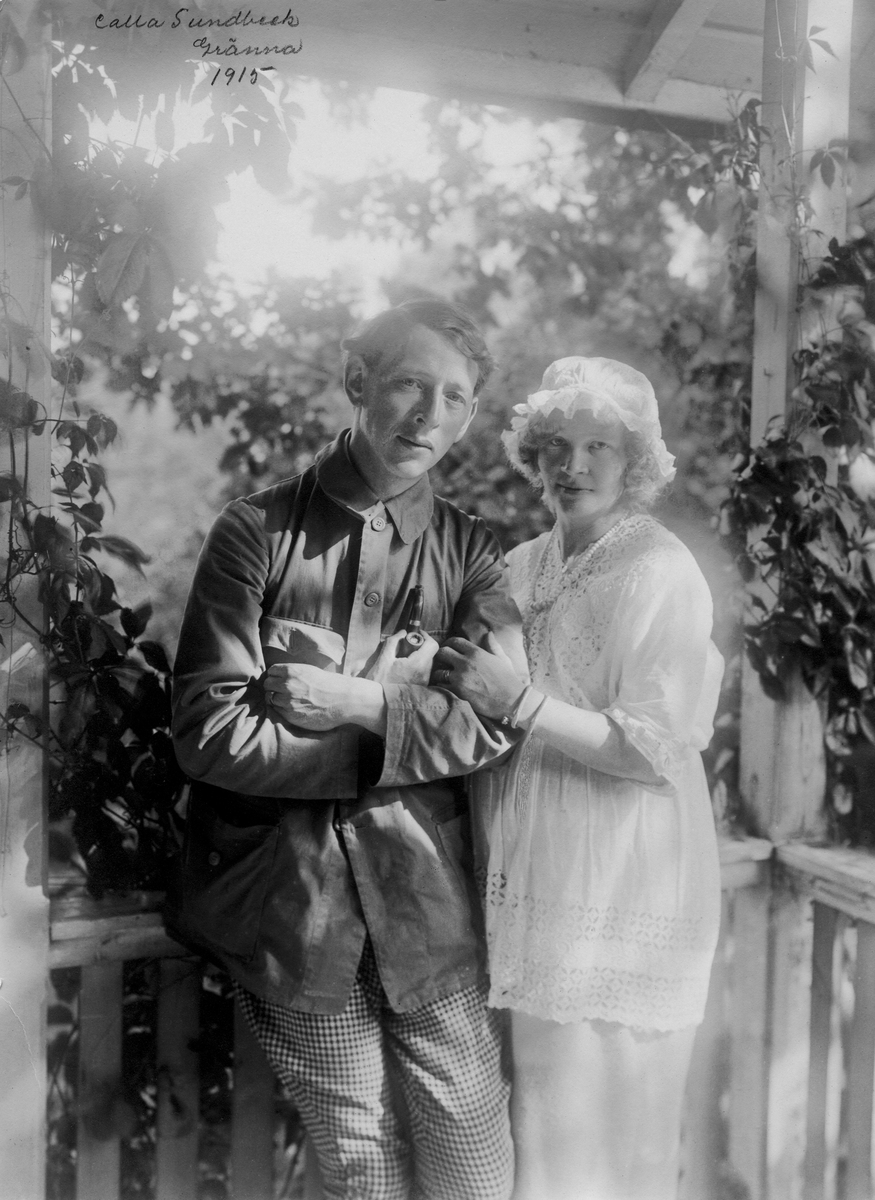 John och Ester Bauer tillsamman på Villa Björkuddens veranda, som ligger vid sjön Bunn utanför Gränna.