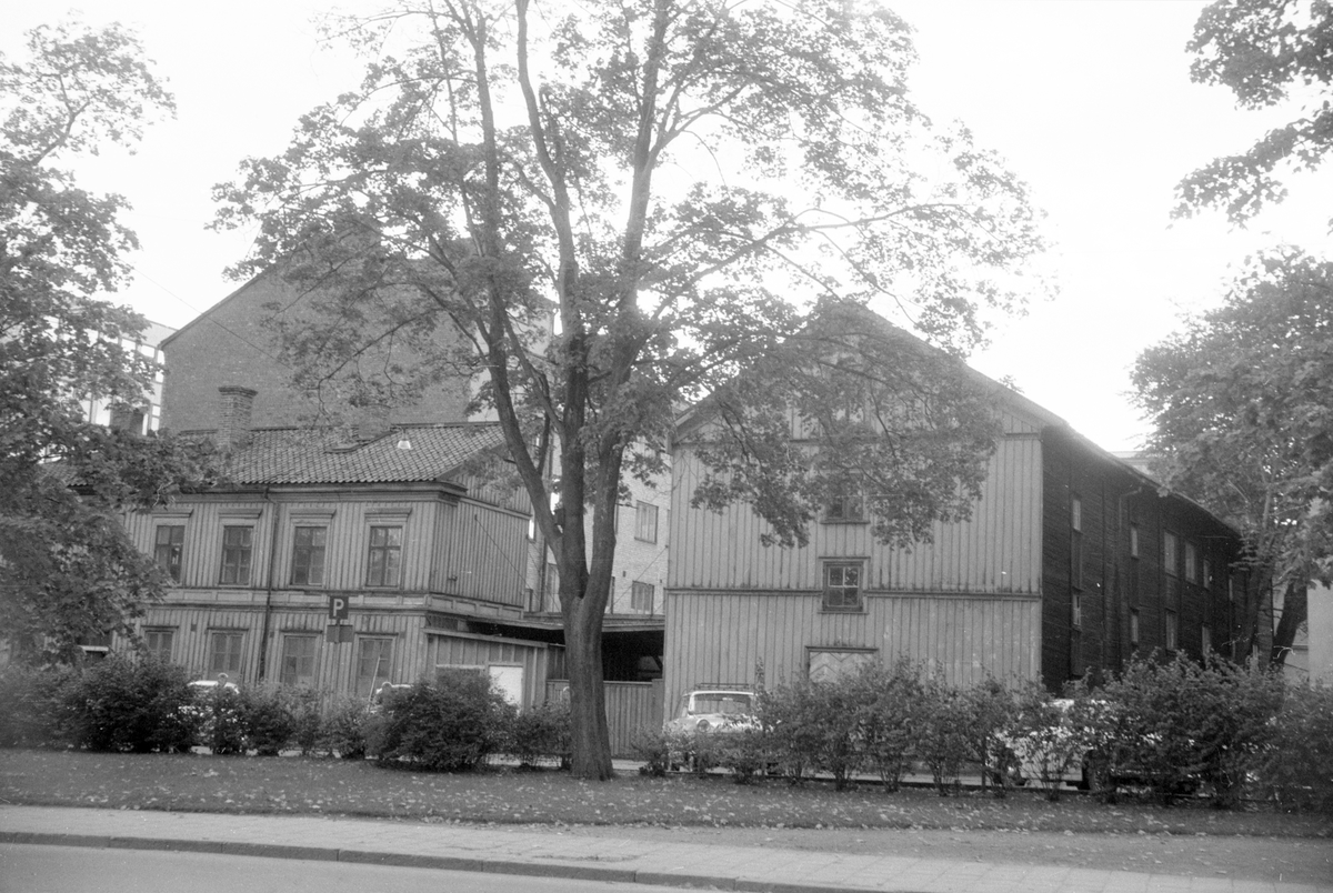 Hotell Örnen (det högre huset till vänster) ligger på Västra Storgatan 15-17 i kvarter Harren i Jönköping. Även en magasinsbyggnad (till vänster) Lilla trädgård ligger i samma kvarter.