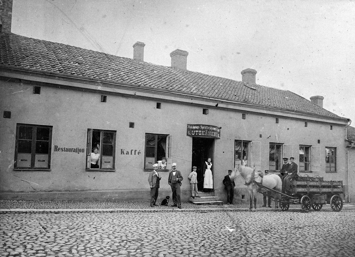 På Barnarpsgatan i Jönköping står häst och vagn utanför "Tummakrogen". Det är Restauration och Kaffé med Utskänkning, matsal och källare. På skylten ovanför dörren står texten: Jönköpings Spritförsäljngs... 6. Utskänkning 6. Människor på bilden är Torsten Johansson (1891-1961), innehavare av Johanssons åkeri (Braheg. 6), Anders Gustav Johansson (1863-1930) var åkeriägare och kusk vid Sandvalls järnaffär samt Lovisa Johansson (f. Andersson) (1855-1925), syster till Anders.