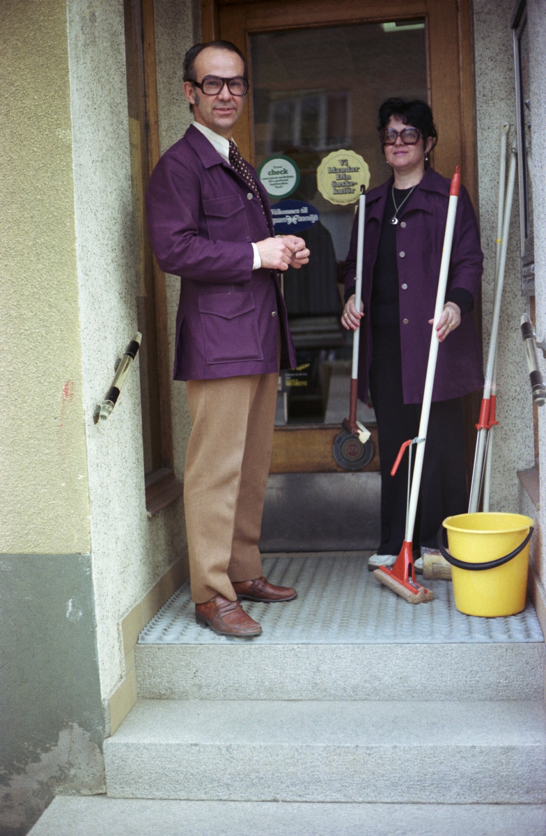 Utanför affären Runes Färg i Huskvarna står ägaren Rune Eklund och hans hustru Waldtraud.