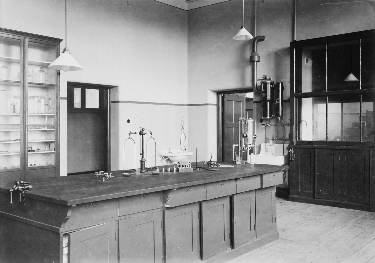 Jönköpings högre allmänna läroverk med interiör från en laboratoriesal.