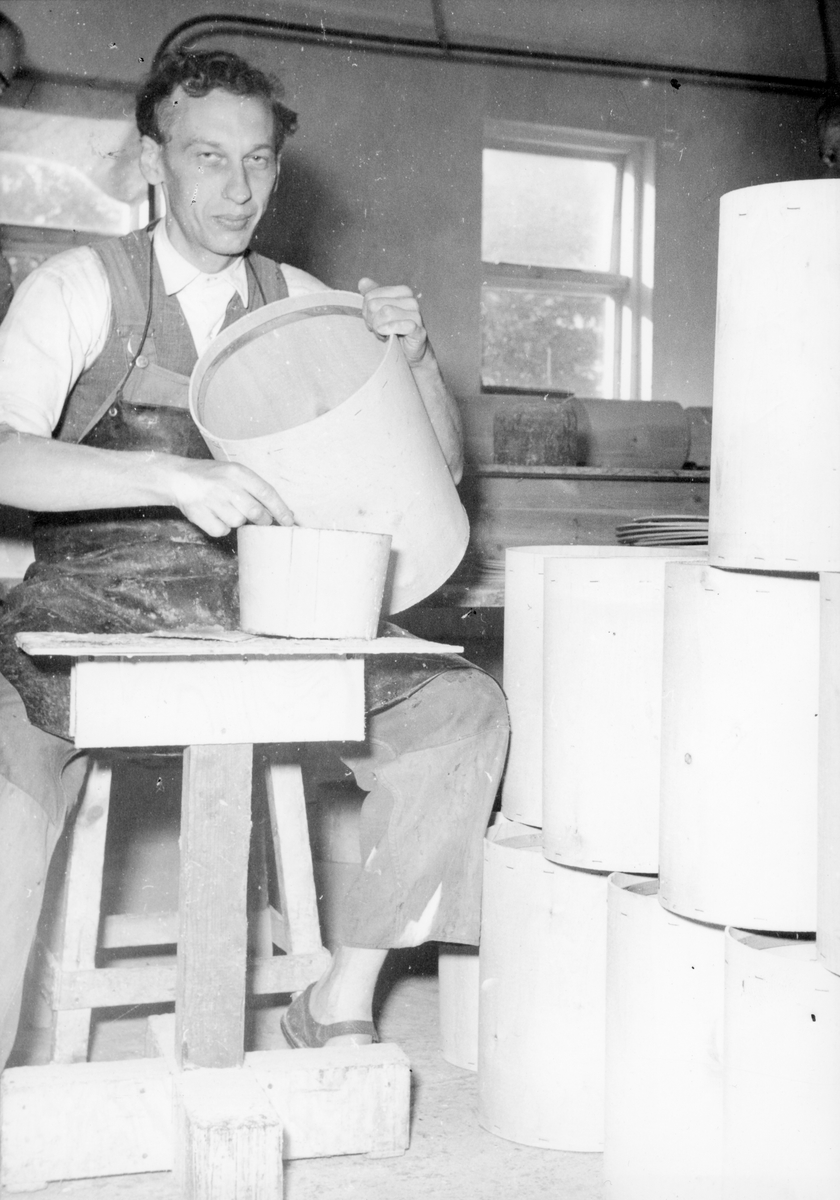 Habo Laggkärlsfabrik. Limning av plywoodtunnor av Herbert Karlsson.