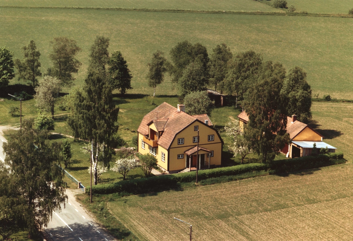 Flygfoto över fastighet på Vetlandavägen 5 i Myresjö, Vetlanda kommun.