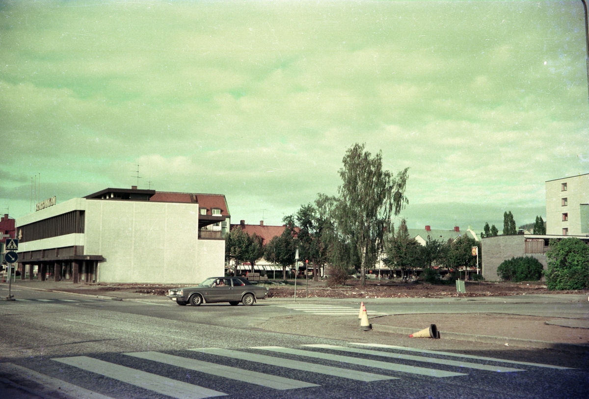 Sparbanken vid Jönköpingsvägen - Kungsgatan i Huskvarna. Tomten bredvid är förberedd för byggnation.