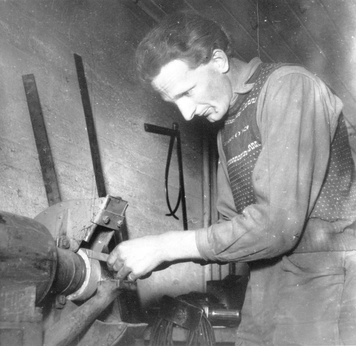 Vid Habo Laggkärlsfabrik arbetar Karl Axel Bratt vid slipmaskinen.