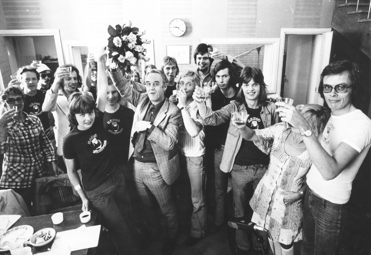 Lokalradioförsöket i Jönköping. Sista dagen och Smålands Folkblad bjuder på champagne.