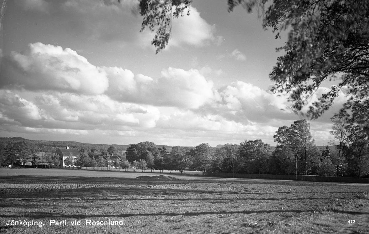 På området vid sandbankarna på Rosenlund mellan Jönköping och Huskvarna, hade Rosenlunds herrgård sina åkrar och fält. I bakgrunden syns den allé som idag är Lindallévägen.