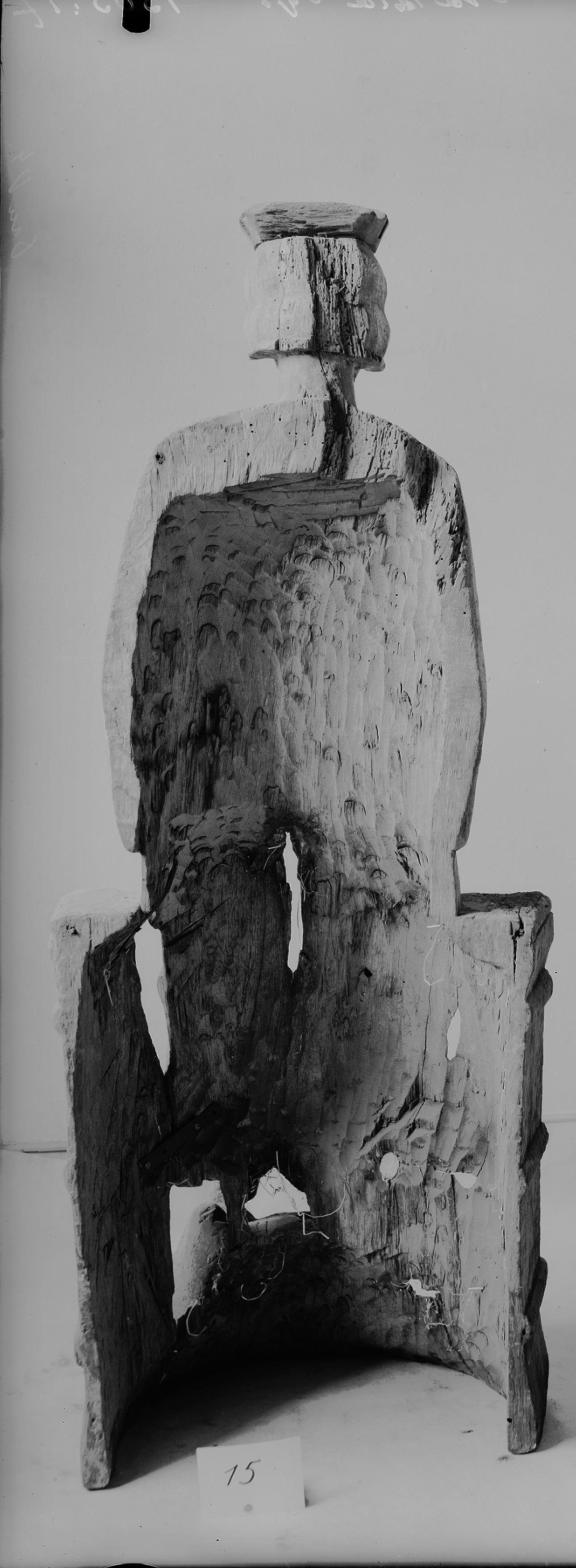 En medeltida skulptur finns bevarad som föreställer Sankt Olof. Troligtvis från 1200-talet. Baksidan.
