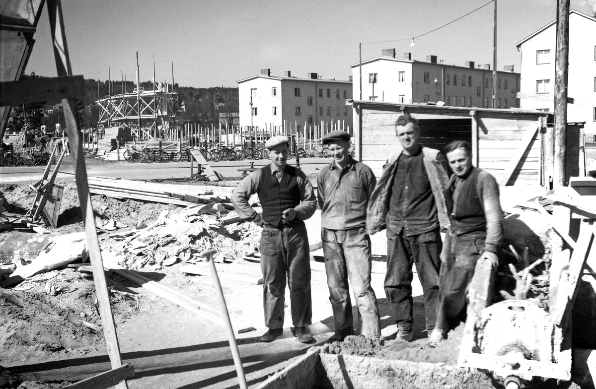 Bygge av hus på Studiegatan i Jönköping. Husen i bakgrunden ligger på Björngatan. De två till vänster är byggda av stiftelsen Solgårda och är så kallade barnrikehus.