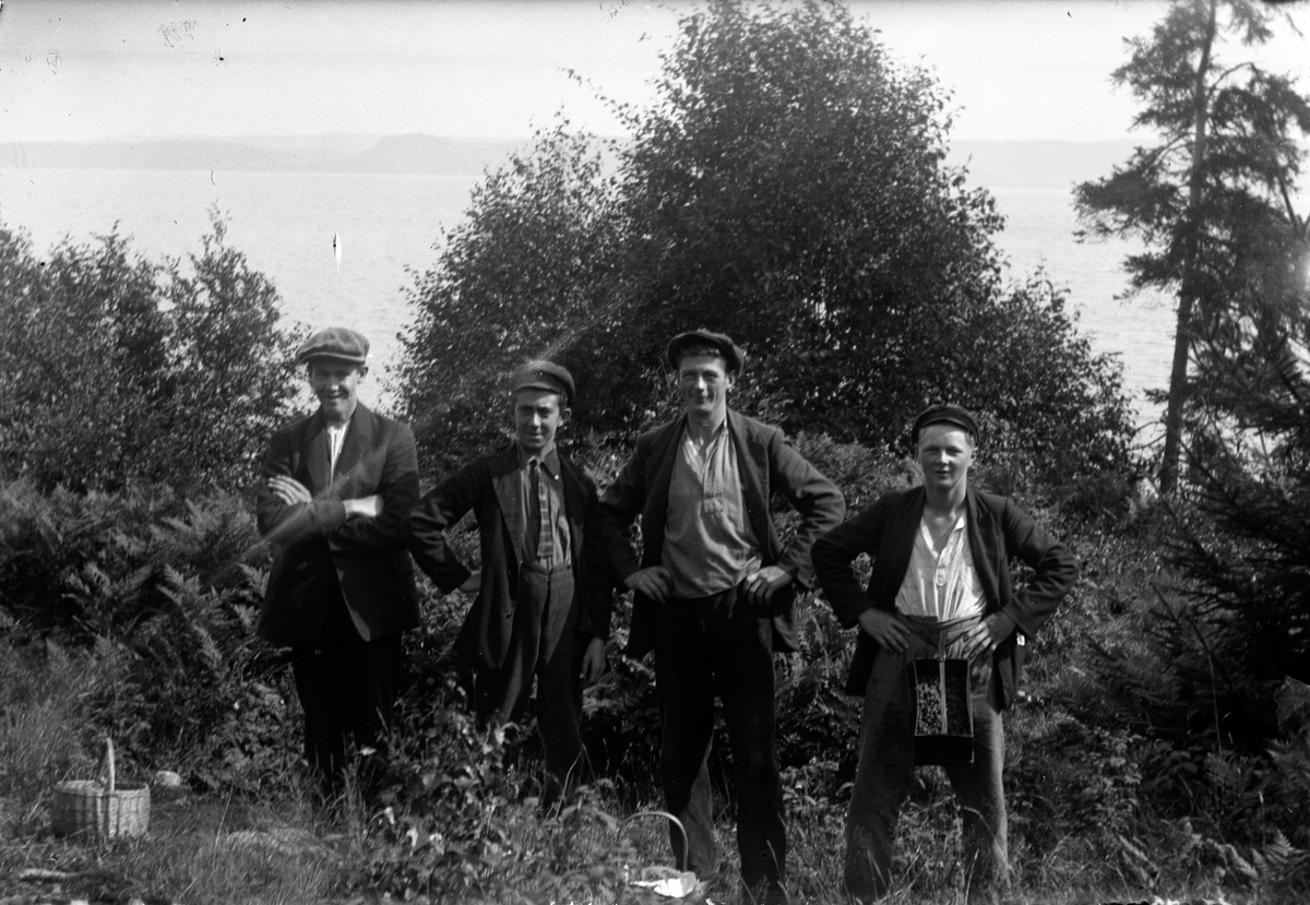 Fyra äldre pojkar som plockar bär. Erik Svensson (3).