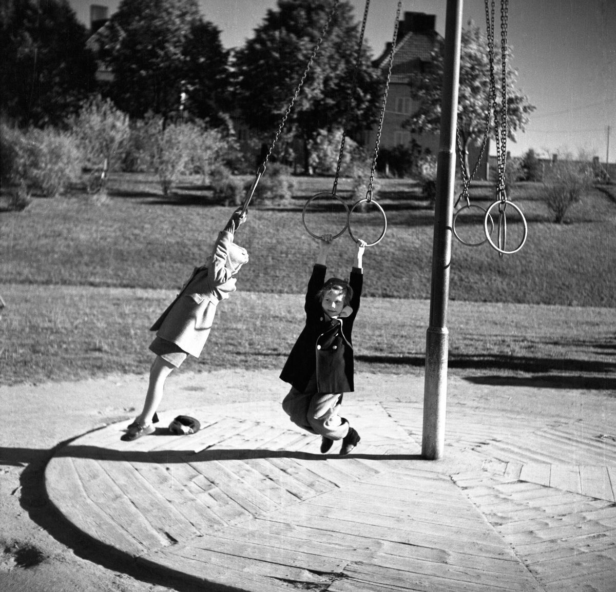Två barn på lekplatsen i Friaredalen i Jönköping.