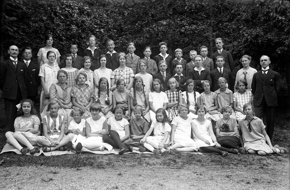 Gruppbild på kvinnor och män i gröngräset.