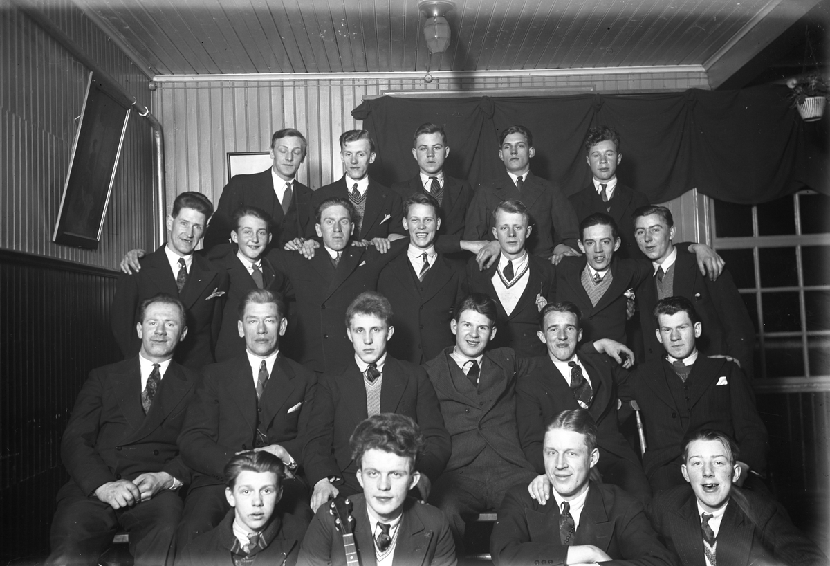 Gruppbild på män i en samlingslokal.