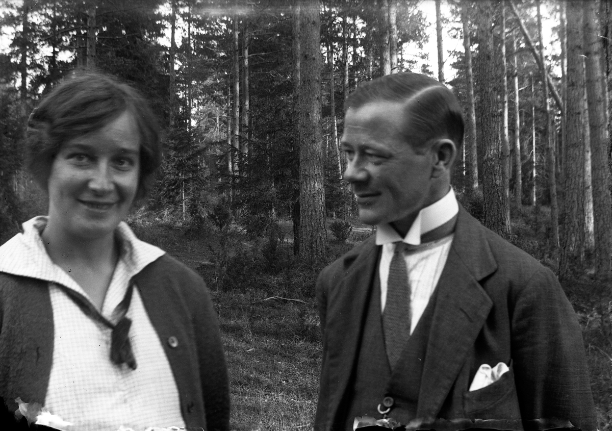 En man och en kvinna i barrskogen vid Lungkliniken i Eksjö.