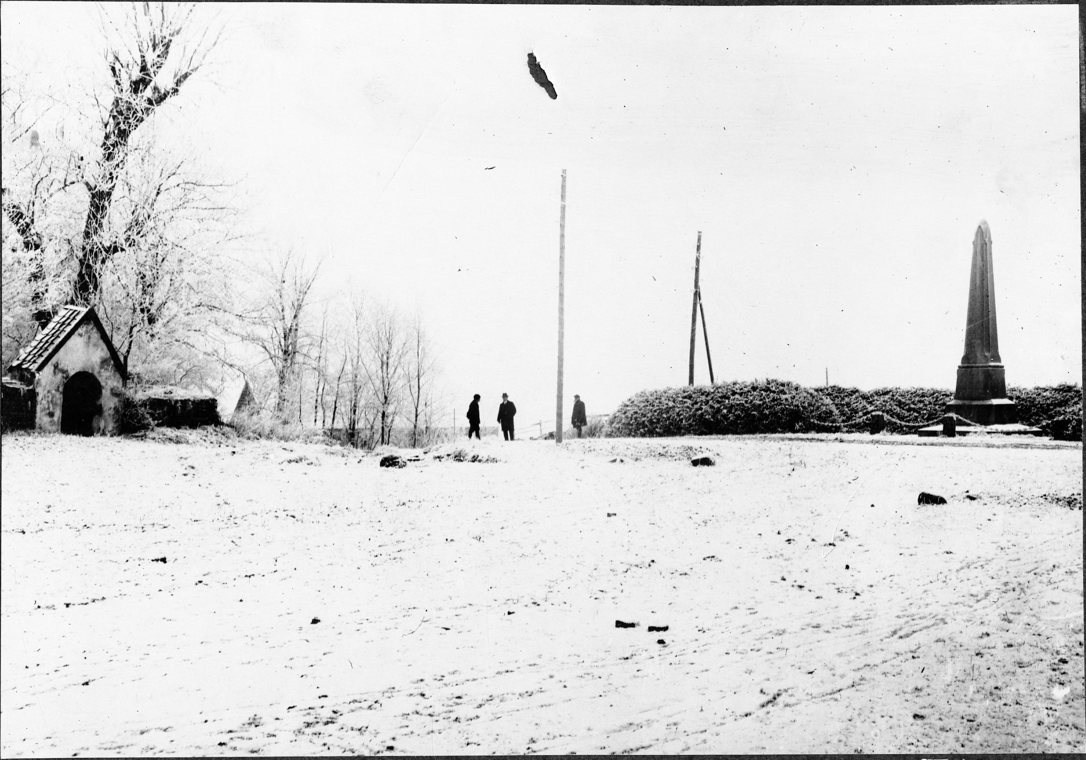 Kyrkans omgivning. Den öppna platsen mellan byn och kyrkan där ny väg planerats.