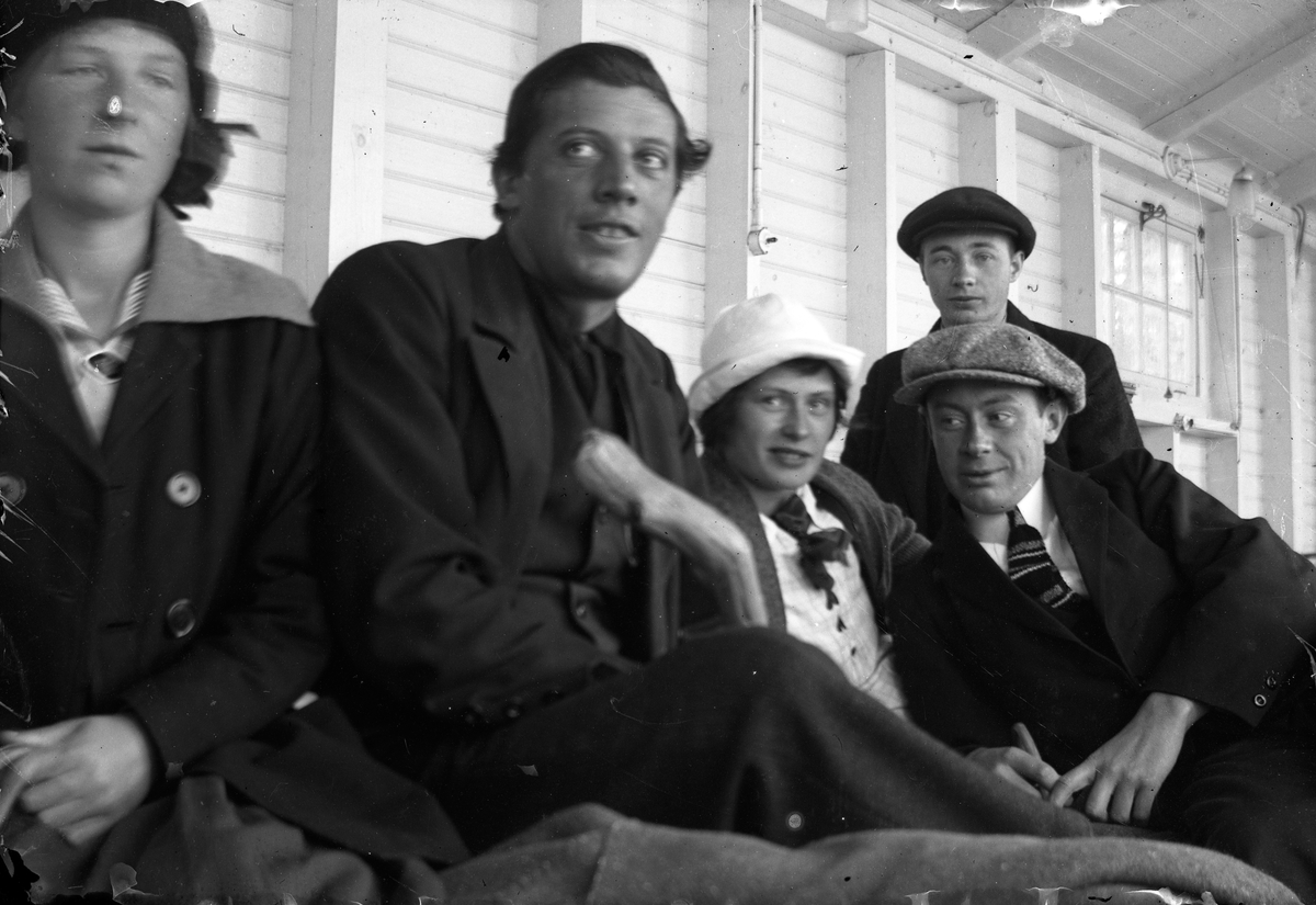 Lungkliniken i Eksjö. Tre män och två kvinnor sitter på en träveranda. Gustav Andersson (5).