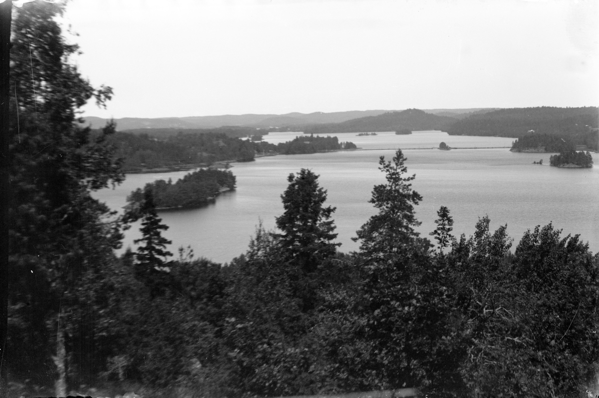 Utsikt över Bunnsjön, på banken som korsar sjön for trådrullartåget fram till år 1935. Idag är det bilväg.