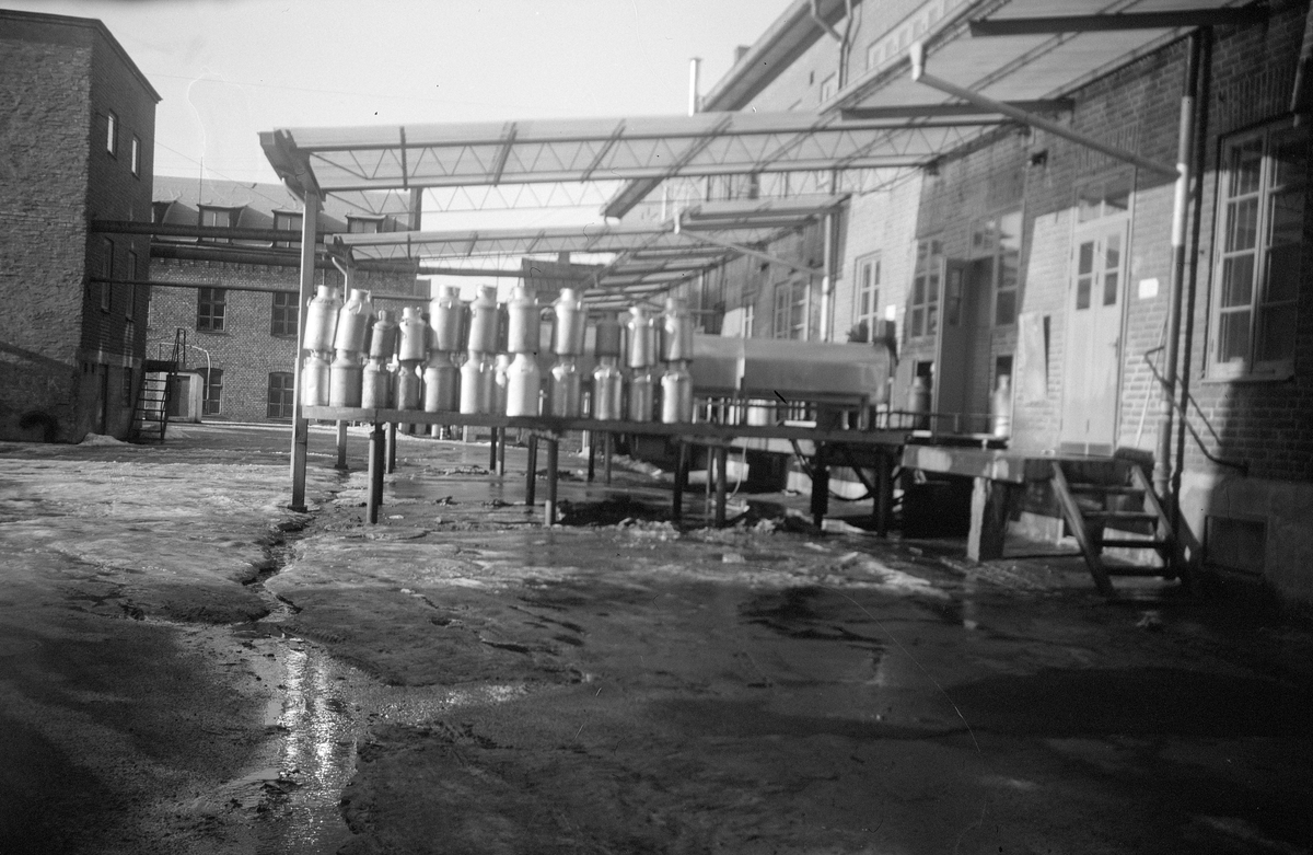 Gamla mejeriet i Jönköping med lastbrygga full med mjölkkannor.