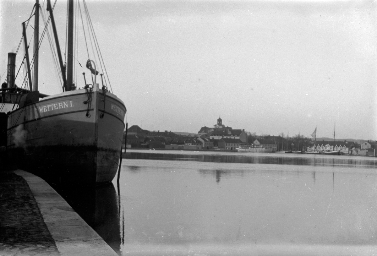 Båten "Wettern 1" vid kajen i Munksjön i Jönköping.