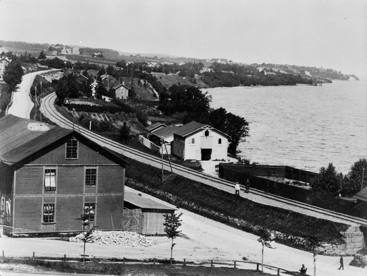 Utsikt över nuvarande Kortebovägen i Jönköping med dåvarande snickerifabriken i förgrunden.