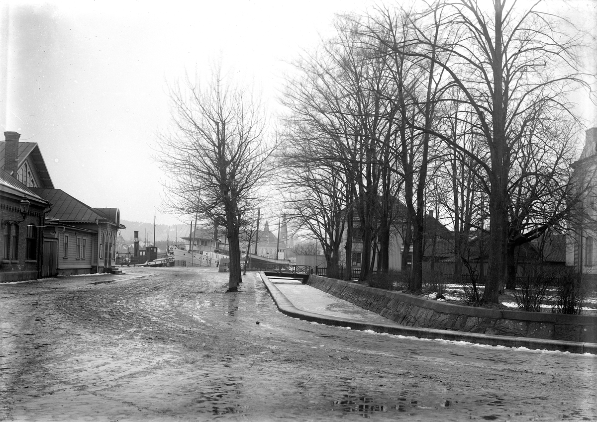 Arkivgatan, en del av Slottsgatan utanför Jönköpings läns museum. Till vänster ligger Frälsningsarmén och till höger Hovrätten. Rakt fram ligger fartyg förtöjda i Munksjön.