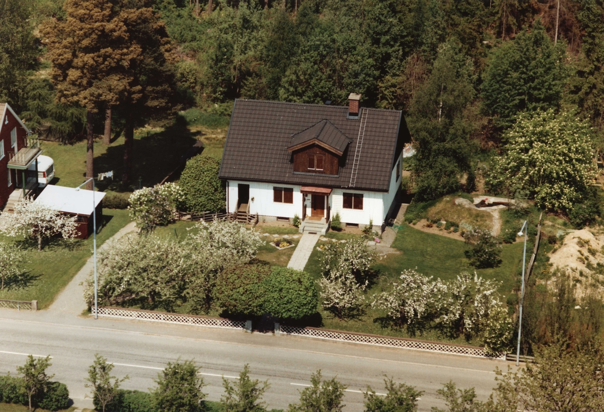Flygfoto över fastighet på Vetlandavägen 39 i Landsbro, Vetlanda kommun.